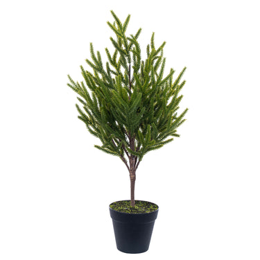 Norfolk Pine greenery is timeless holiday joy to your home with these beautifully crafted trees. Designed with lush, lifelike foliage, each tree brings the serene charm of nature indoors while offering versatile decorating options. Whether styled as-is in its included pot or placed inside a decorative planter, this tree elevates any space with fresh, natural beauty.