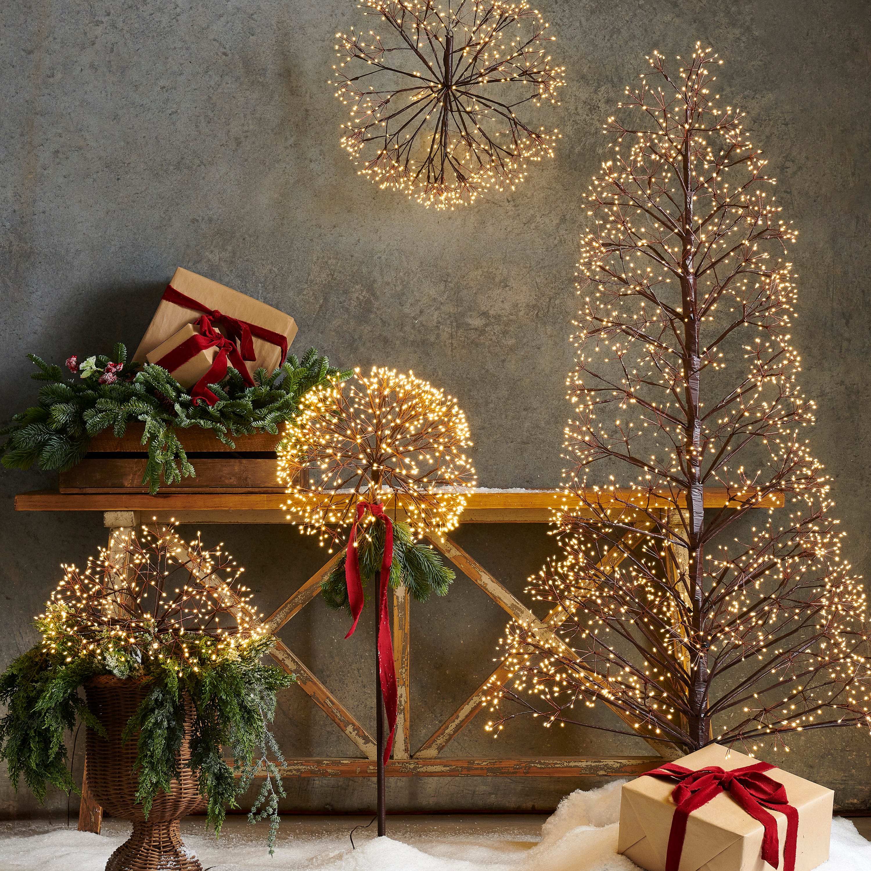Enhance your holiday décor with a beautifully crafted lighted orb that radiates a warm, inviting glow perfect for both indoor and outdoor settings. This festive decoration features Warm White LED lights and brown branches adding a wow factor to your holiday displays.
