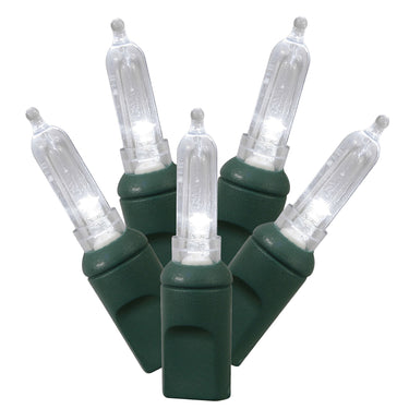 Indoor/Outdoor 50-Count LED Mini Christmas String Lights, Pure White, Green Wire, 25', by Vickerman