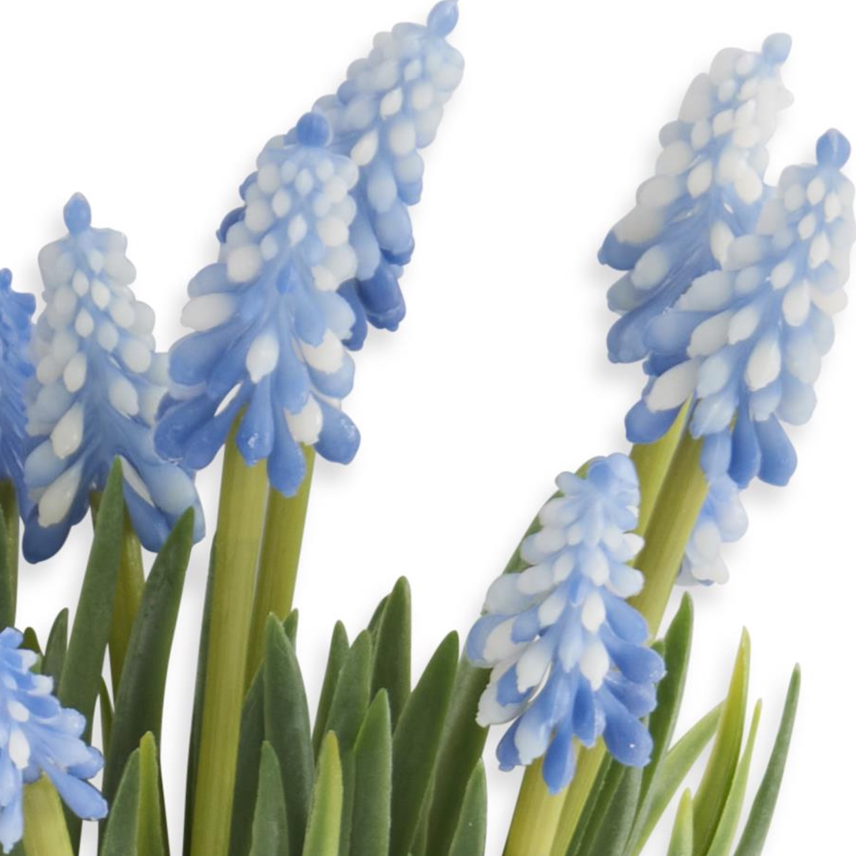 Bring Spring time charm into your home with this 10.5" Blue Grape Hyacinth 6-Stem Bundle. Each artificial stem is carefully crafted with soft blue blossoms and slender green leaves, capturing the delicate beauty of real grape hyacinths in bloom.