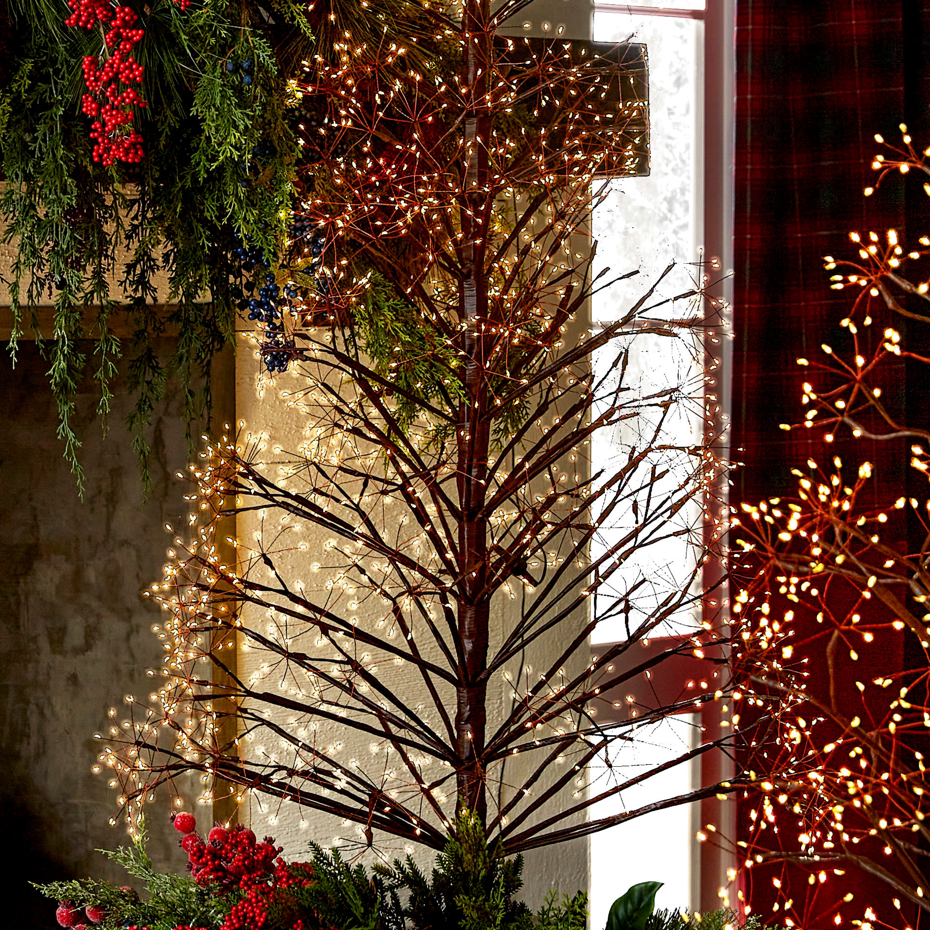 Illuminate your holiday décor with a stunning 4' or 6' fairy light starburst Christmas tree that brings warmth, elegance, and festive magic to any space. Featuring hundreds to thousands of warm white LED lights twinkling across durable branches crafted from copper, iron, and PVC, this tree creates a mesmerizing glow that enchants both indoor and outdoor settings. The captivating twinkling effect fills your home or yard with radiant holiday cheer, making it a perfect centerpiece for seasonal celebrations.