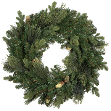Bring timeless holiday elegance to your home with the Emerald Mixed Fir Artificial Christmas Wreath, crafted with green flocked PVC and PE/Hardneedle tips for a full, natural look. Accented with realistic pine cones, this wreath adds a rustic charm that perfectly complements traditional holiday décor. The pre-lit version shines bright with warm white Dura-Lit® LED mini lights, running on 120v for a reliable and energy-efficient glow. The Dura-Lit® technology ensures that even if one bulb goes out, the rest will stay lit, keeping your wreath beautiful all season long. For a classic, versatile option, the unlit version allows you to decorate with your own lights and accents. Both styles are recommended for indoor use only, offering years of festive enjoyment.