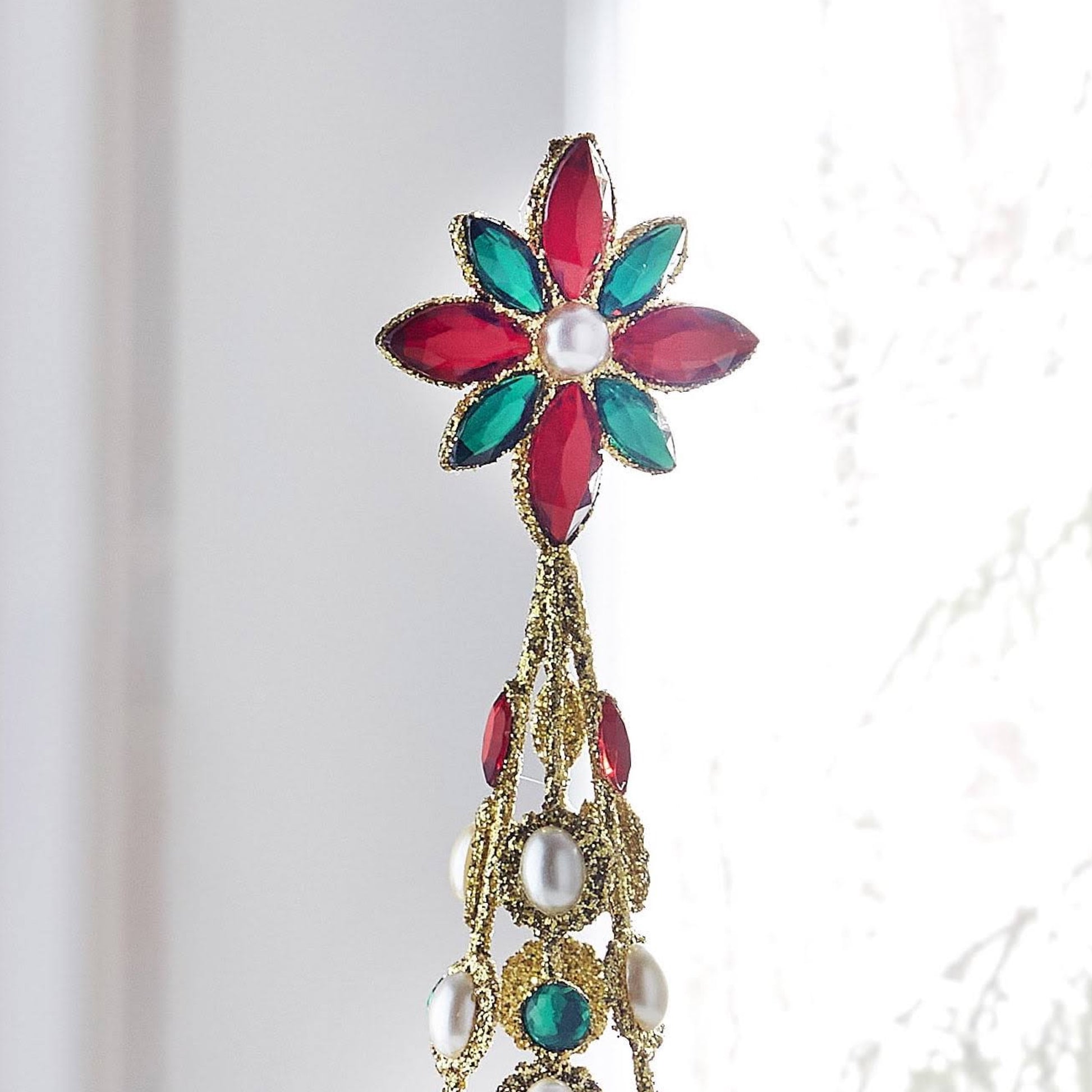 - Glitz and Glam - Adorned with dazzling white pearls, red and green jewels, and shimmering gold glitter for a luxurious, festive look.