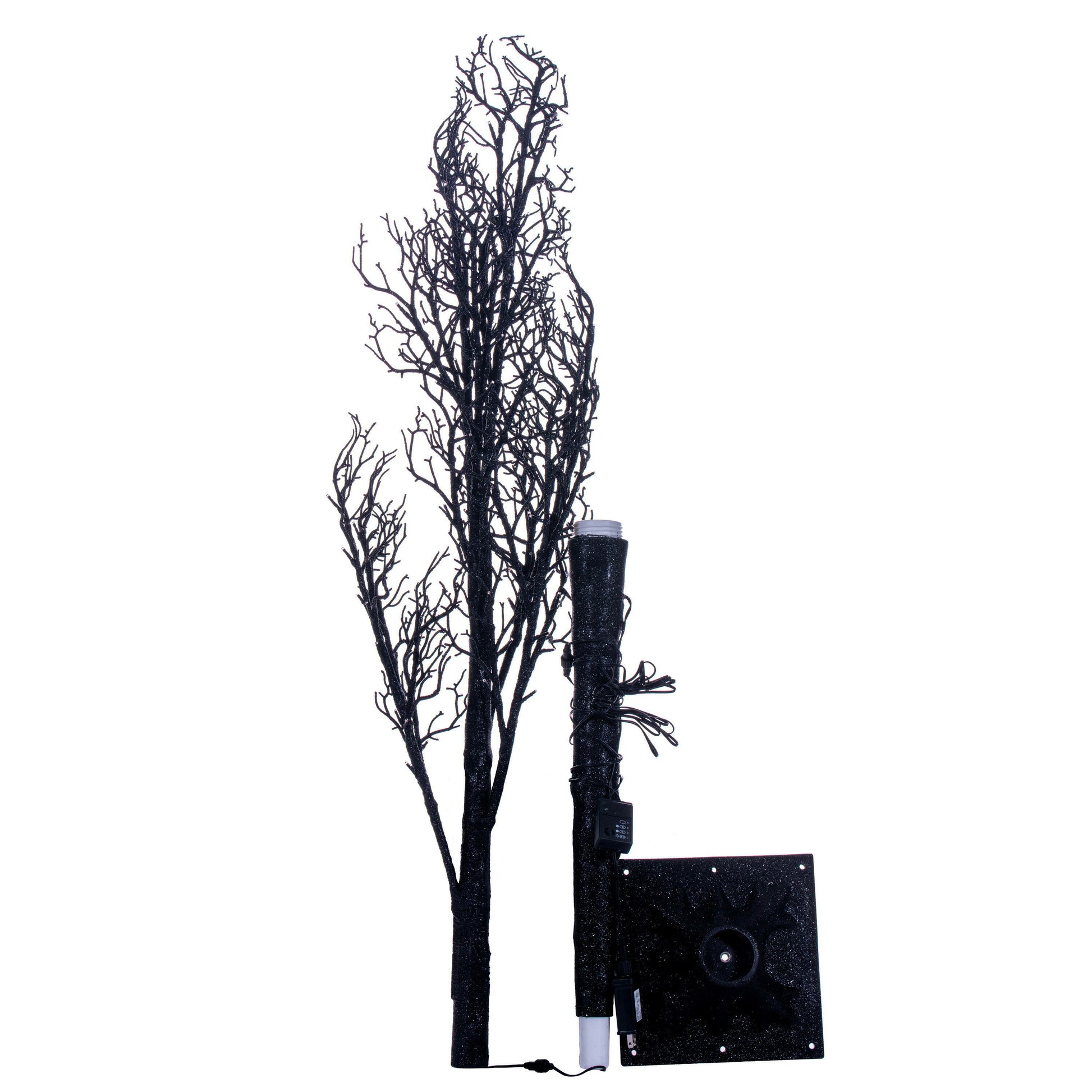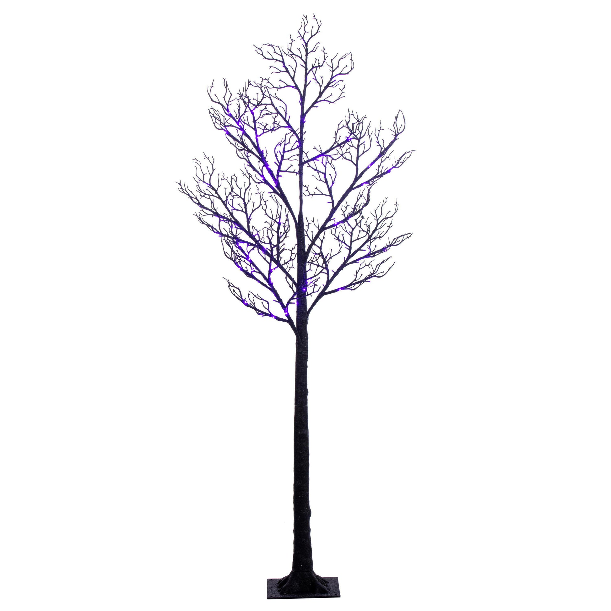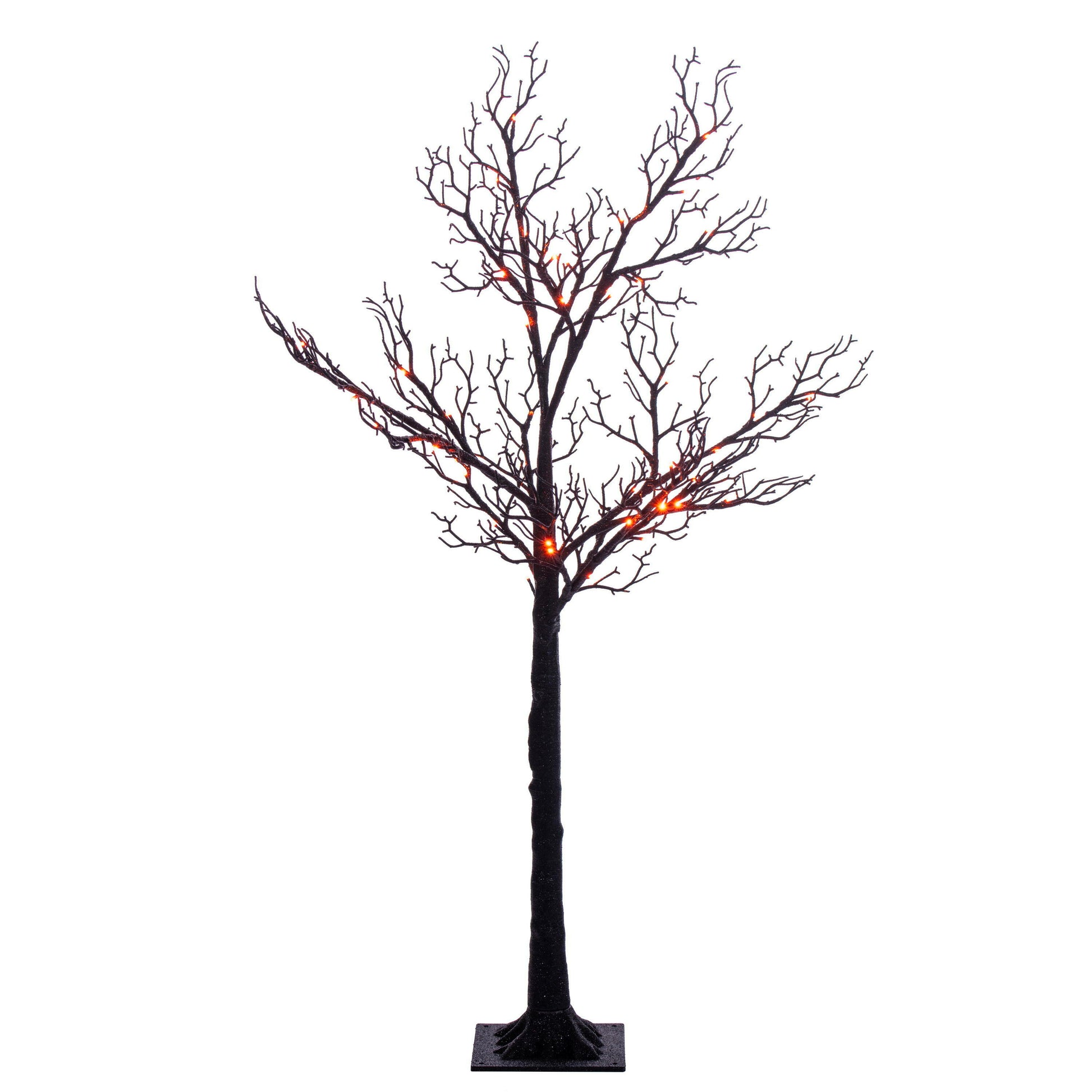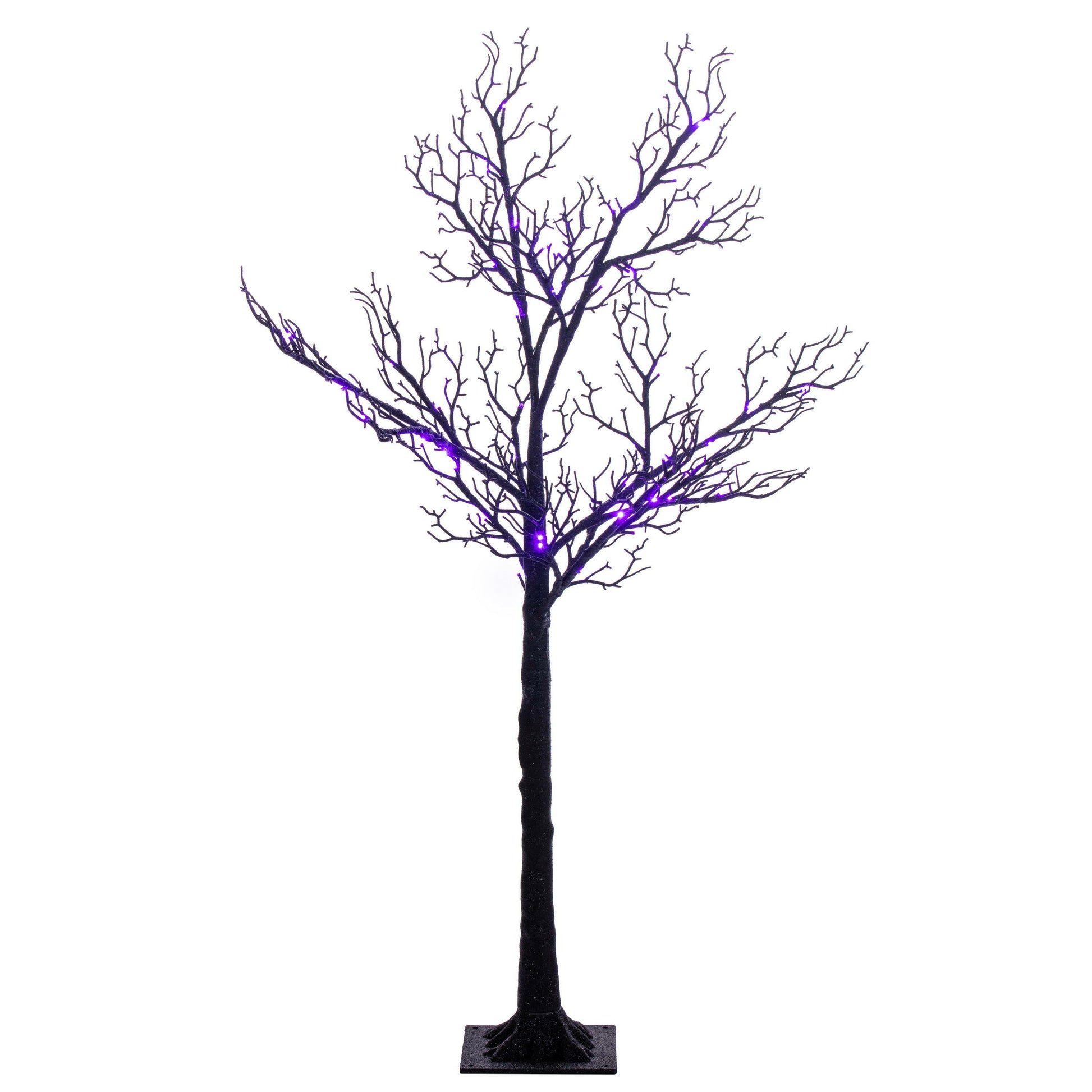 Create a spooky statement for your Halloween décor with this Black Twig Decorative Tree, available in 4’ and 6’ heights. Each tree is adorned with vibrant LED lights that can switch between orange and purple, setting the perfect eerie glow for your haunted celebrations. The 4’ tree features 48 LED lights and a 7.08” x 7.08” base, while the 6’ version boasts 96 LED lights and a 9.45” x 9.45” base. Both trees come with a 16-foot UL-approved black power cord, making them safe for both indoor and outdoor use. Light functions are conveniently controlled by a remote located on the power cord, and the bulbs are long-lasting and non-replaceable.