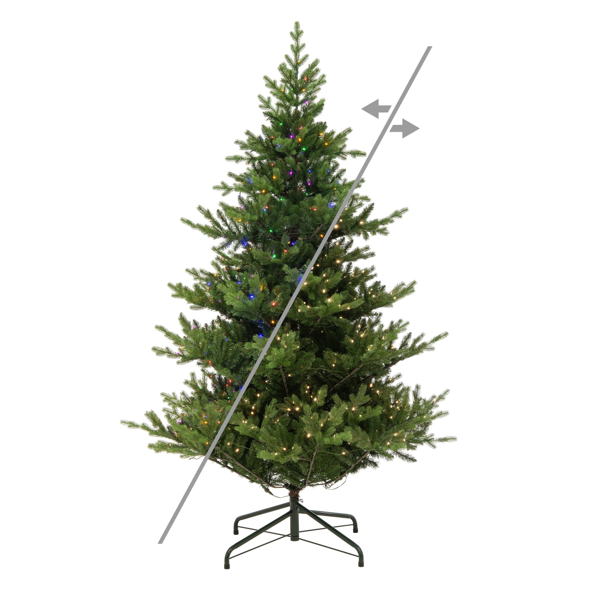 Choose between unlit models for complete creative freedom or pre-lit options featuring color-changing LED lights with 10 dynamic functions. Each tree includes a convenient power pole design and a foot pedal to control lighting effects such as warm white or multi-color in steady, twinkle, fade, sequential, and color-change modes. The metal hinged branch construction allows for quick assembly and easy fluffing year after year, while a sturdy folding metal tree stand ensures reliable support.