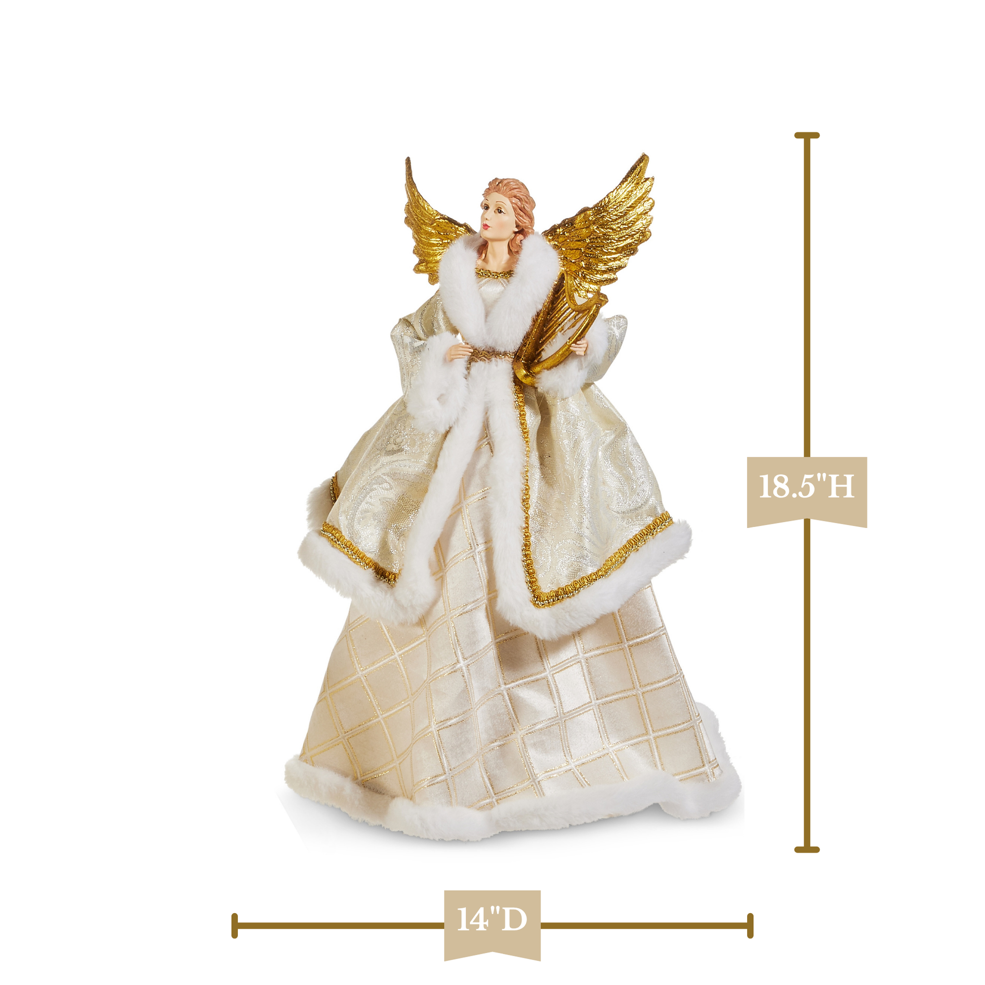 RAZ Imports 18.5" Gold Victorian Angel with Fur Coat and Harp Christmas Tree Topper