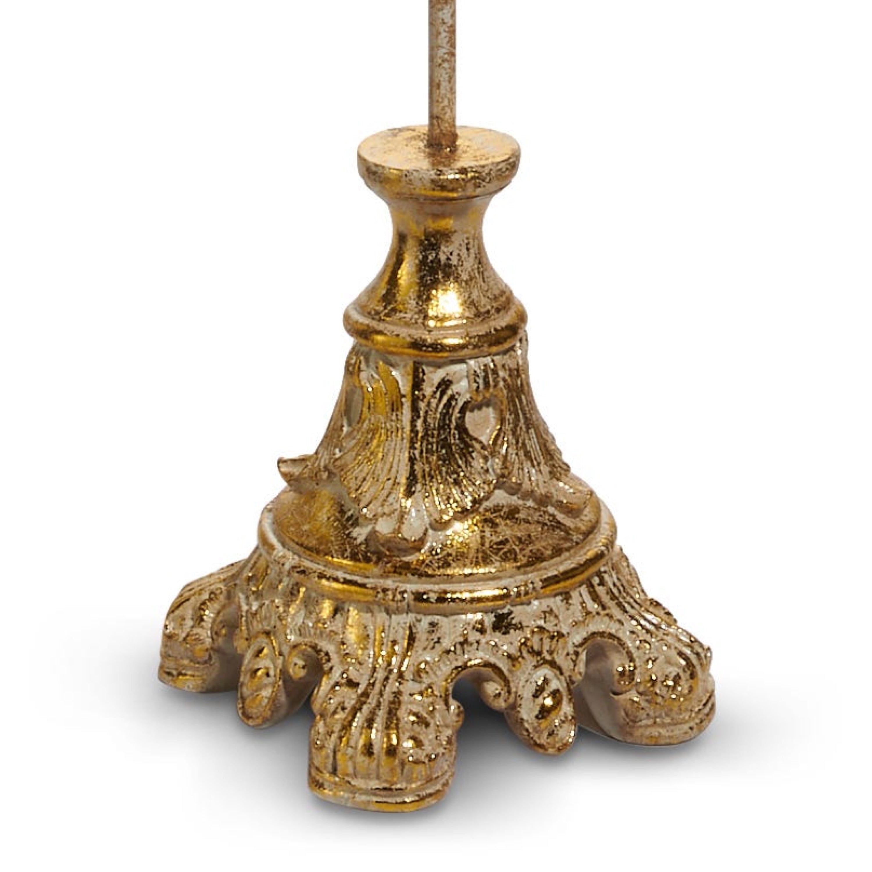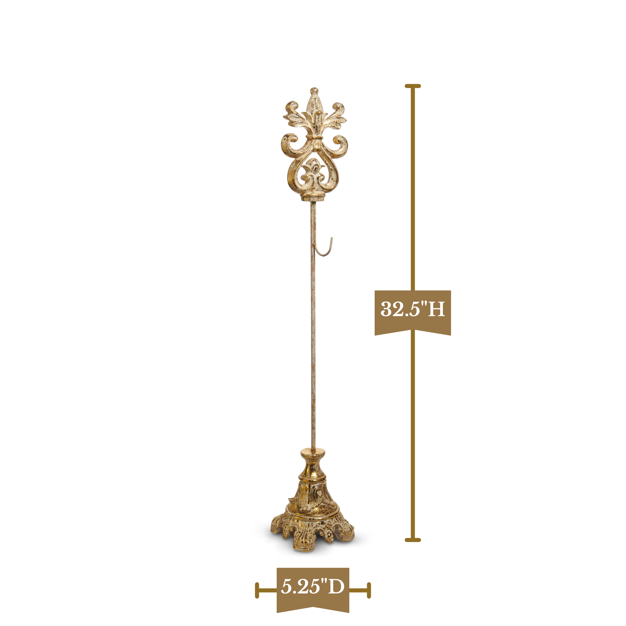Elevate your seasonal décor with this elegant gold acanthus wreath stand, designed to showcase your favorite wreaths with timeless sophistication. Finished in antique white and gold tones, this decorative stand features ornate acanthus detailing and a beautifully sculpted base that adds old-world charm to any display. Crafted from durable polyresin and measuring 5.25” L x 5.25” W x 32.5” H, it offers both stability and refined style for holiday wreaths or statement décor pieces.