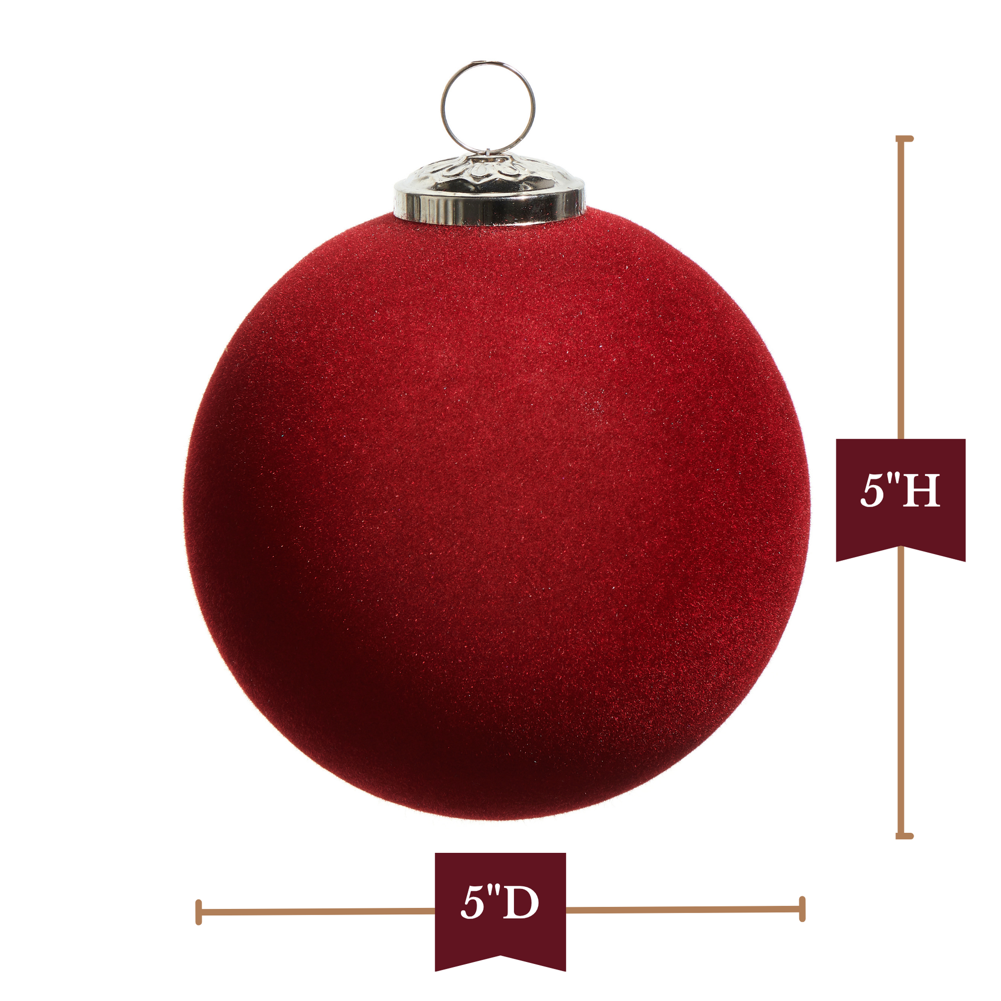 RAZ Imports 5" Red Velvet Flocked Glass Ball Christmas Ornament