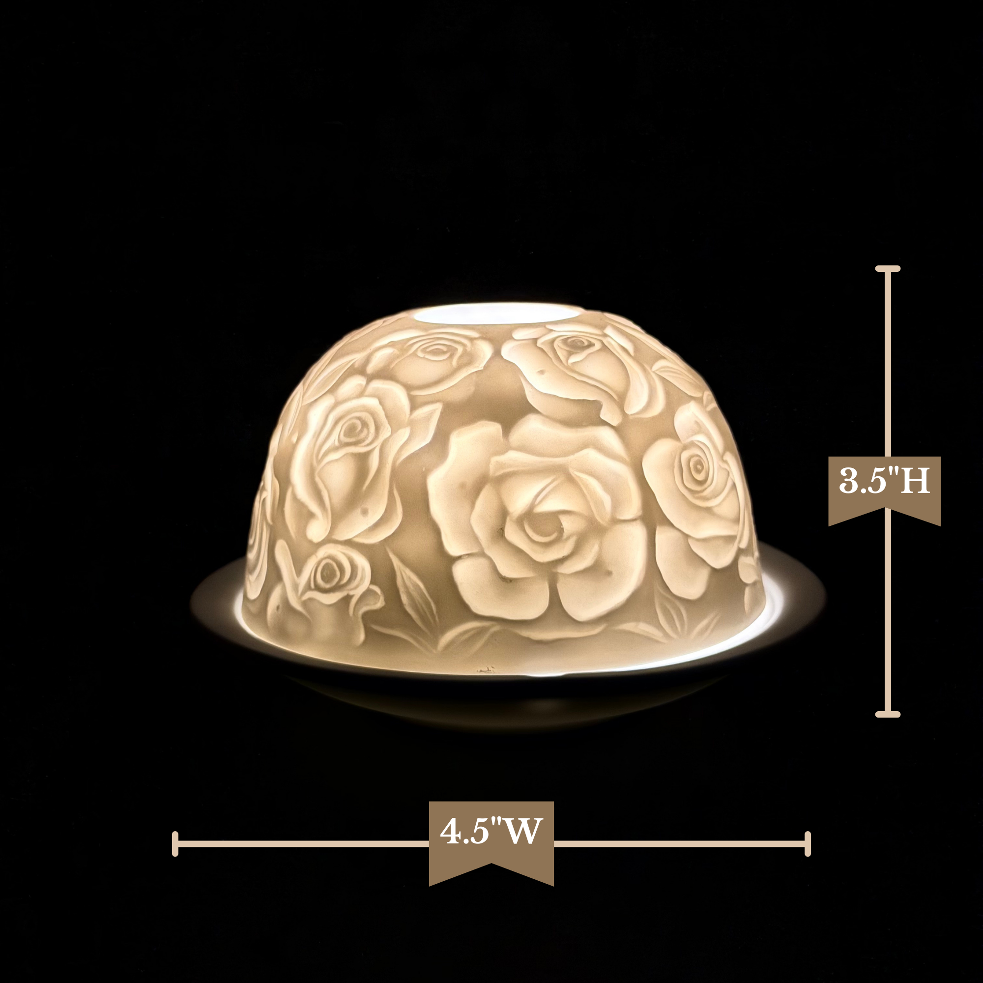 Starlight Porcelain Votive Light Rose Blooms Glowing Candle Holder Spring Decoration for Mother's Day