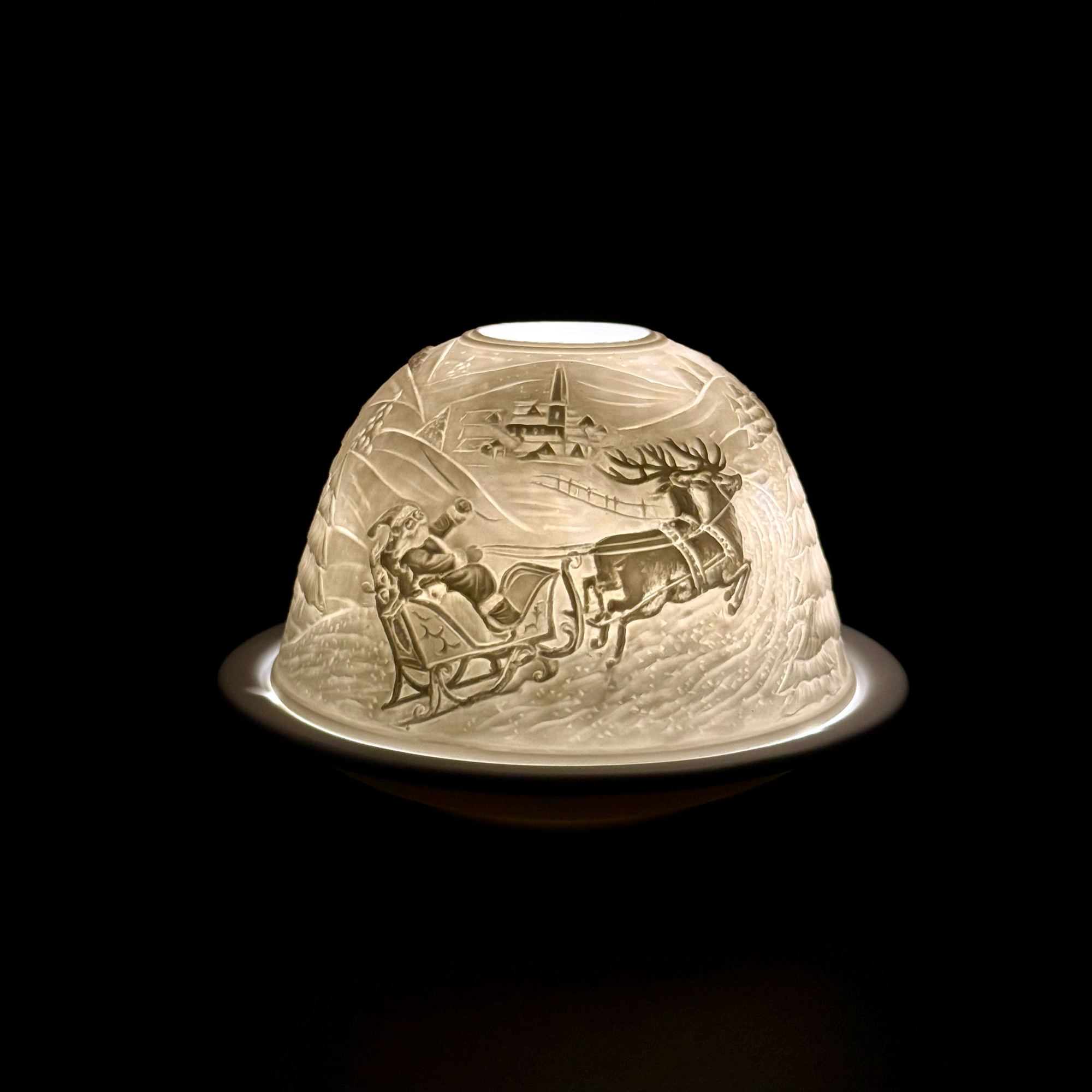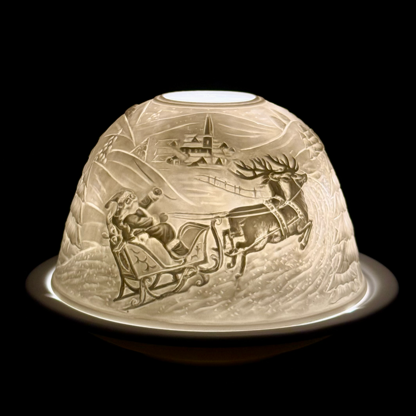 Starlight Porcelain Votive Light Santa's Sleigh and Reindeer Glowing Candle Holder Christmas Decoration