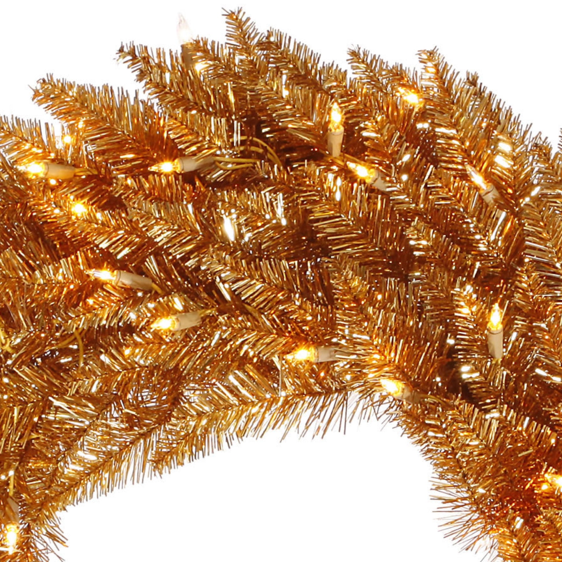 24" Copper Tinsel Pre-lit Artificial Christmas Wreath with Warm White LED Lights by Vickerman