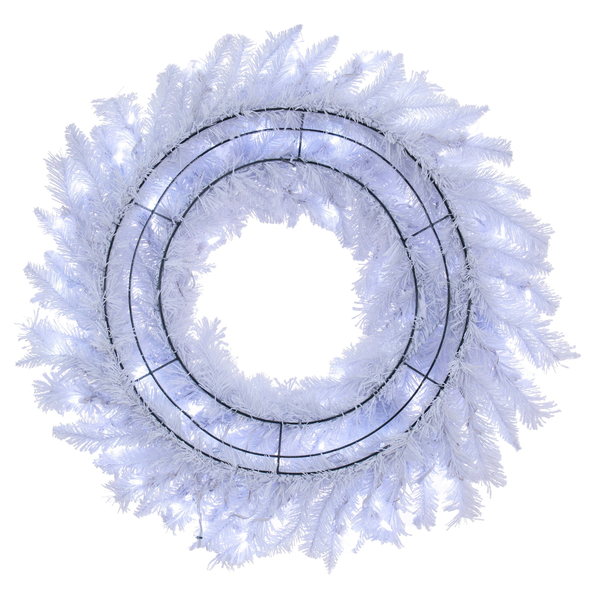 Flocked White Pine 24” Pre-lit Artificial Christmas Wreath with Cool White LED Lights