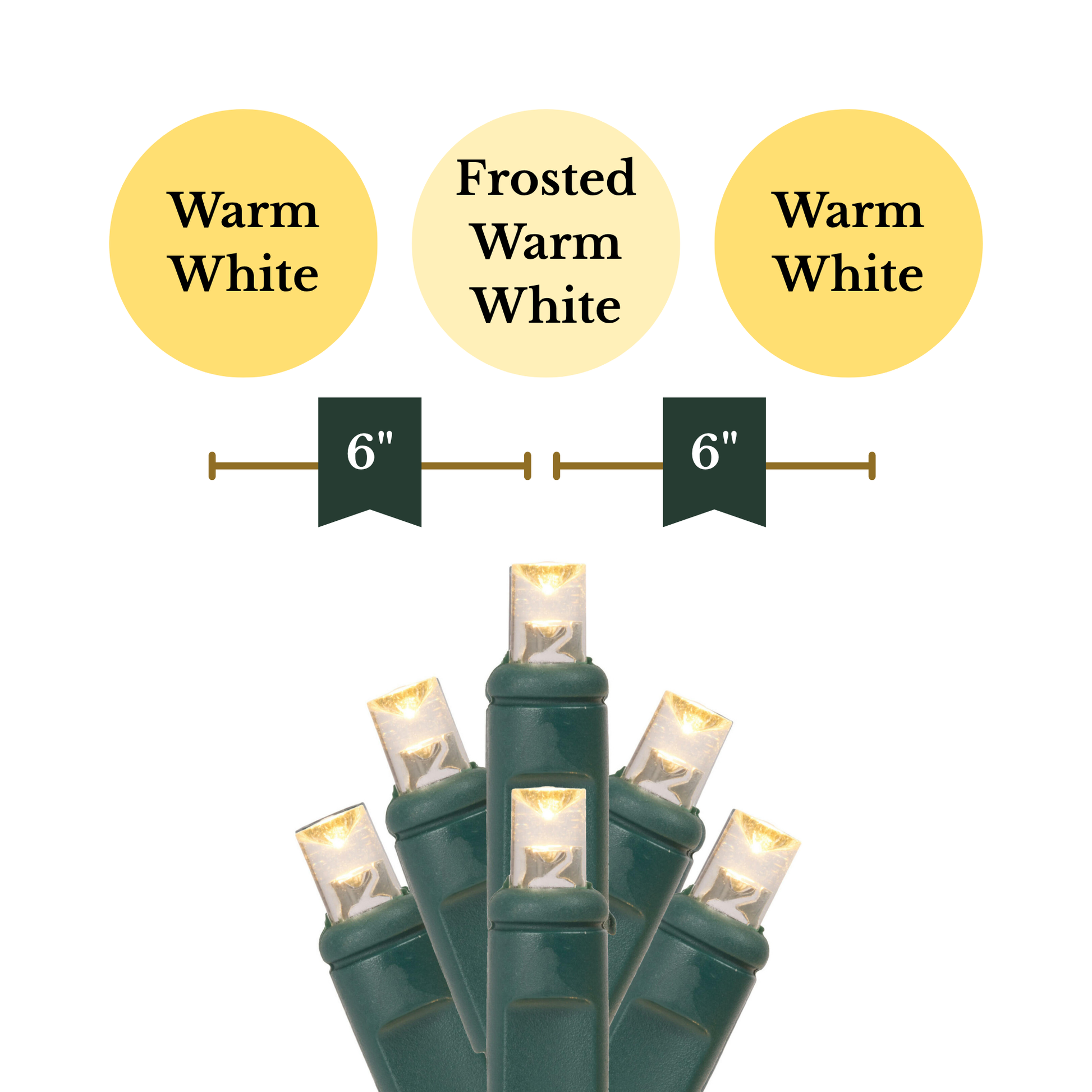 Enhance your holiday décor with this 25-foot light strand featuring 50 warm white frosted LED bulbs on a green wire with 6" spacing. The frosted finish provides a soft, inviting glow, perfect for creating a cozy atmosphere both indoors and outdoors. With energy-efficient LED technology and durable construction, this light set is designed to last throughout the season.
