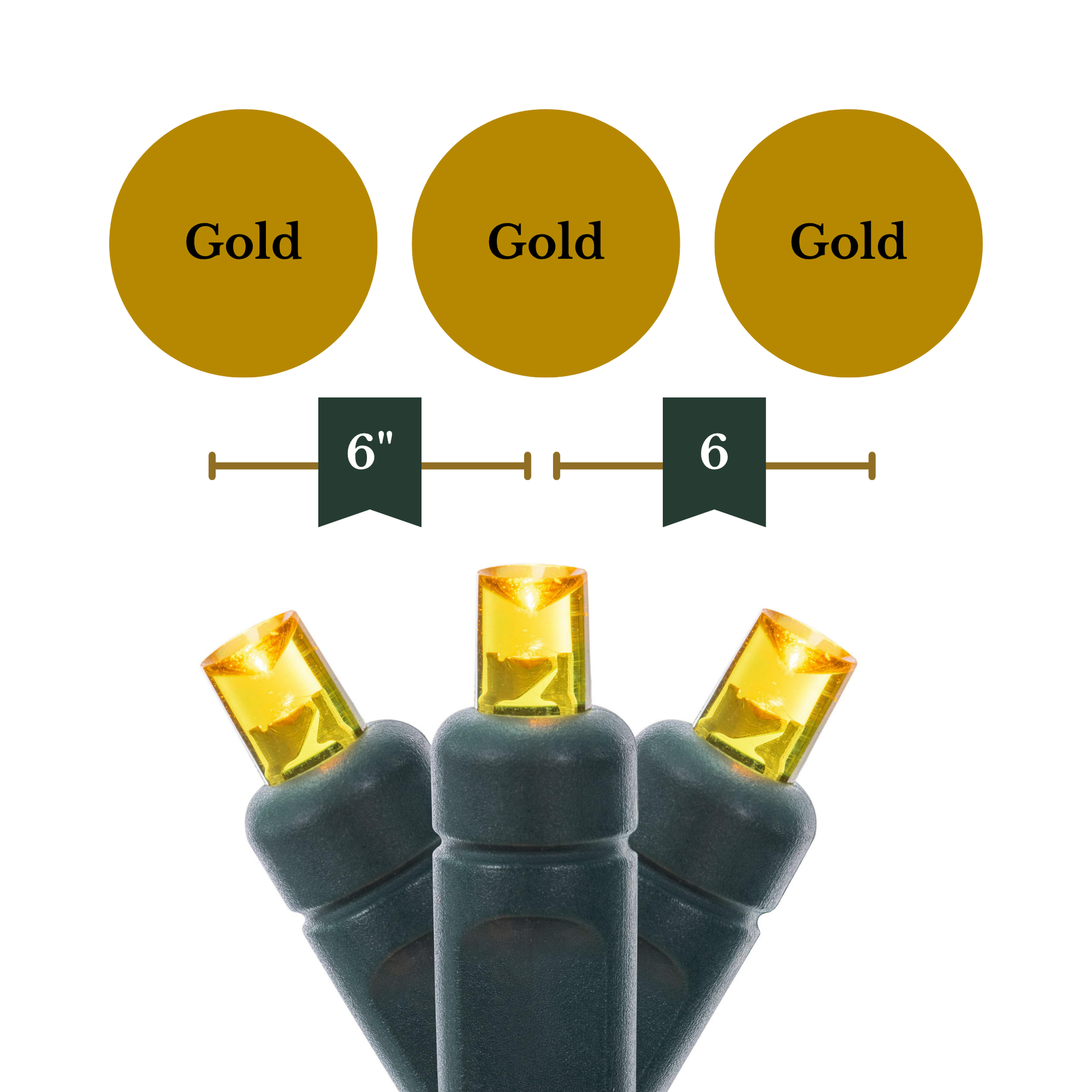 Indoor/Outdoor 50-Count LED Wide Angle Christmas String Lights, Gold, Green Wire, 25', by Vickerman