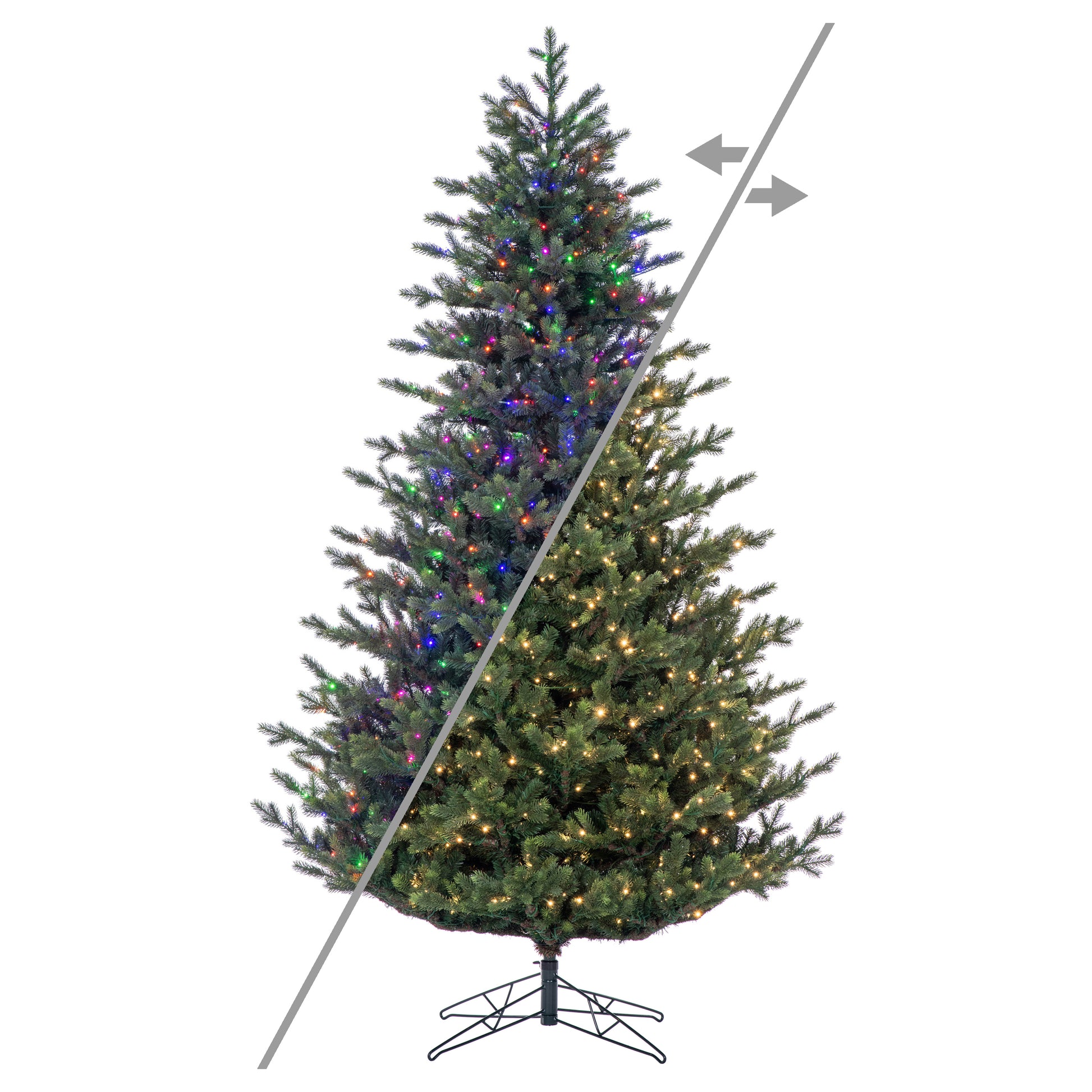 Welch Fraser Fir Artificial Christmas Tree offers a lush, realistic appearance with a natural blend of PE and PVC tips. The full tree is offered in unlit, warm white Dura-Lit® LED mini lights, or LED color changing and clear lights. The slim tree is available in unlit or pre-lit with LED color changing and clear lights. Pre-lit models include advanced lighting features for customizable holiday displays. All options are designed for quick assembly with durable metal hinged branches and a sturdy folding metal tree stand.