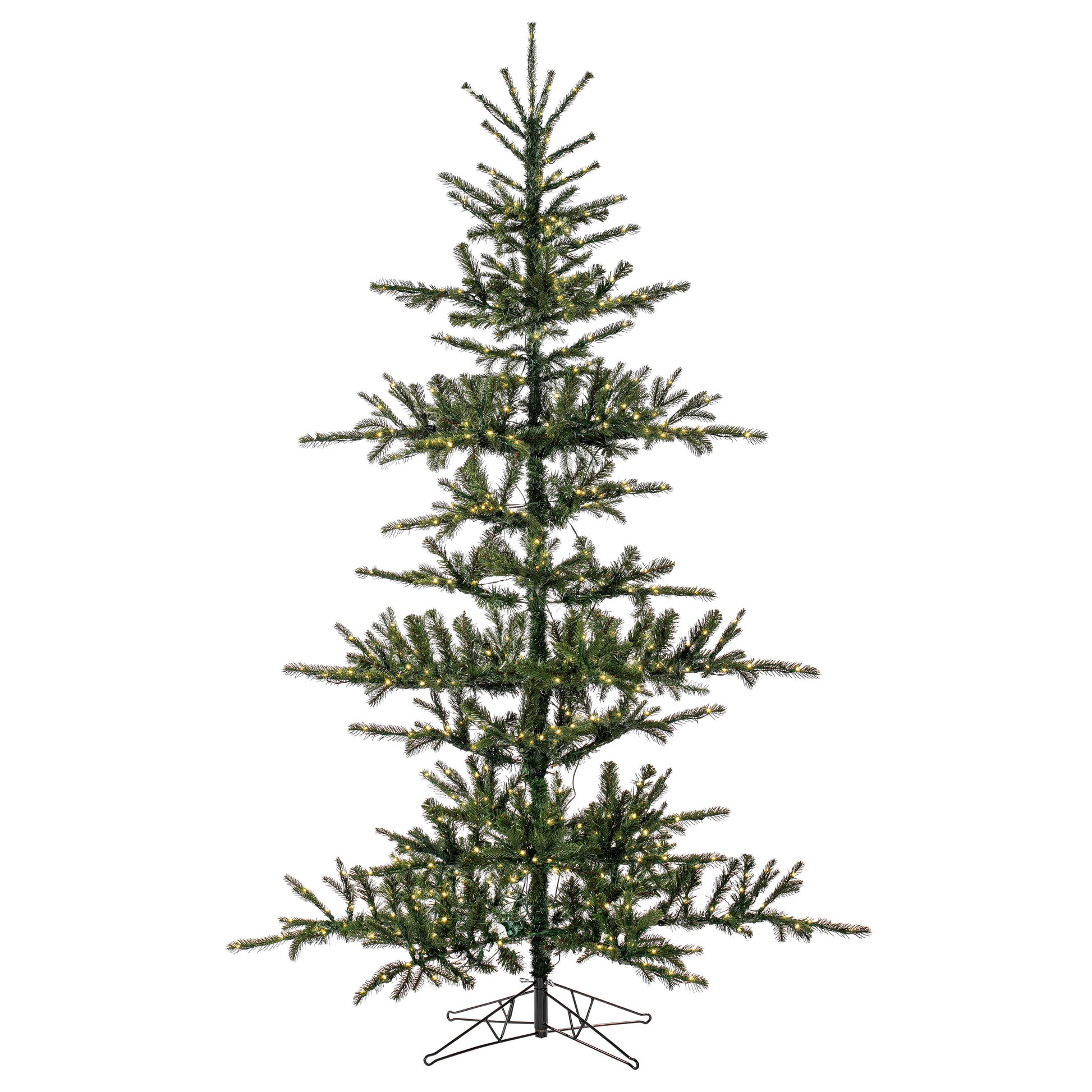 The Yukon Display Artificial Christmas Tree combines traditional charm with modern lighting. Crafted with durable PVC tips on sturdy metal hinged branches, this tree is designed for long-lasting beauty and easy setup. It comes pre-lit with warm, energy-efficient Low Voltage 4mm LED Seed Lights that create a soft, inviting glow throughout your holiday space. A folding metal tree stand is included for stability and convenience.